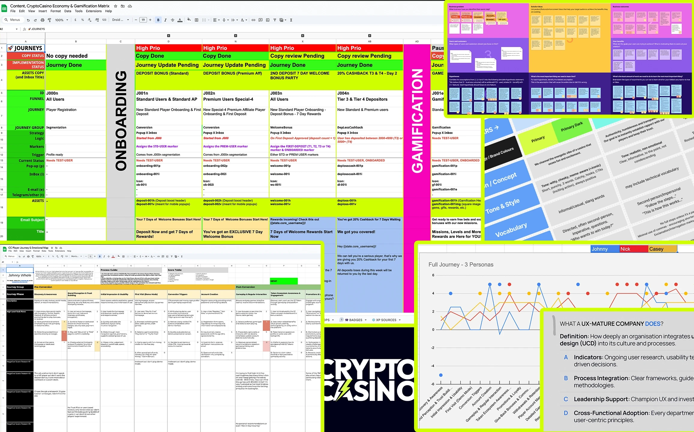Created three detailed user personas through extensive research: Johnny “The Crypto Native” (high-stakes whale demanding VIP treatment and large bet capabilities), Casey “The Casual Player” (social crypto enthusiast seeking smooth onboarding), and Nick “The VIP Grinder” (methodical player requiring transparency and detailed game statistics).
